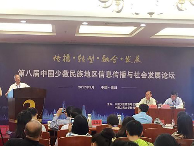 2017年9月16日,由中國少數(shù)民族地區(qū)信息傳播與社會發(fā)展論壇組委會、中國人民大學(xué)新聞傳播學(xué)院、寧夏大學(xué)新聞傳播學(xué)院聯(lián)合主辦,銀川市傳媒集團(tuán)協(xié)辦的第八屆少數(shù)民族地區(qū)信息傳播與社會發(fā)展論壇在寧夏銀川舉行。來自全國42所高校的130多名專家、學(xué)者齊聚銀川,圍繞少數(shù)民族地區(qū)信息傳播與社會發(fā)展問題進(jìn)行交流研討。