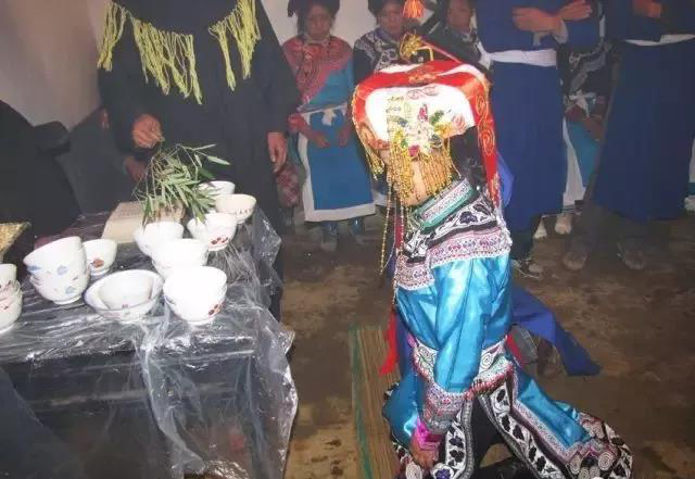 ?。?、源自于民族歌舞文化習俗。彝族是個能歌善舞的民族,自古就有以歌作媒,用歌表達對異性的愛慕和追求的傳統(tǒng)。相傳,彝族先祖篤彌時,洪水淹沒了世界,而篤彌按照天神策舉祖的授意,躲進自造的木桶中幸免于難,成了世間的獨人。天神為了不讓人種在世間滅絕,于是就安排天上三仙女尼友咪比、婁友咪多、吞友武吐下凡到人間,在唄谷懇嘎這地方設歌場,與篤彌唱歌又跳舞,談情又說愛。整個歌場上,熱鬧不一般:天上的仙女,成群來歌場;野人拿舞具,老虎打燈籠;人熊吹蘆笙,歡聚在歌場。彝族的先祖,就是通過歌舞迎得了仙女的歡欣的而成就婚姻而繁衍了彝人的。從此,彝族青年談情說愛、談婚論嫁,都離不開歌舞。歌舞逐漸地融入了婚禮場中,與婚禮上的各種儀式進行對接和植入,通過上千年的發(fā)展,就形成了“阿買懇”。“阿買懇”中的“阿買”指未婚女子,“懇”有“歌舞”、“跳舞”之意。如“唄谷懇嘎”中的“懇嘎”就是歌舞場壩的意思;“懇合”(鈴鐺舞蹈)中的“懇”也有跳的意思;還有“懇咪”,指的是關于歌舞的詩文??梢?,“懇”(歌舞)的內(nèi)容是相當豐富的,因而彝族出嫁時有出嫁歌,這完全是在情理之中的。