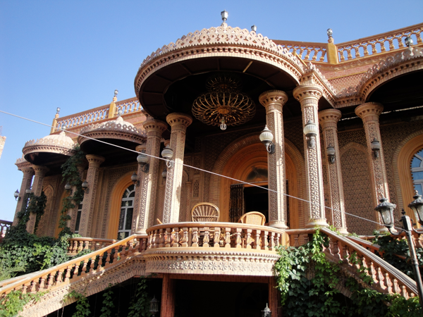 維吾爾族的建筑物有其獨(dú)特風(fēng)格。房屋方形,有較深的前廊;室內(nèi)鑿壁龕,并飾以各種花紋圖案。舊式房屋多系土木結(jié)構(gòu),窗子較小,房頂開一個窗,通風(fēng)采光差;室內(nèi)進(jìn)門有一連灶土炕,用來做飯取暖。平房一般比較講究寬敞明亮通風(fēng)。廳室布置整潔樸雅,四壁呈白色泛藍(lán),掛的壁毯,靠墻置床,被褥均展鋪于床罩或毛毯之下,床上只擺設(shè)一對鏤花方枕。室中央置長桌或圓桌,家具及陳設(shè)品多遮蓋有鉤花圖案的裝飾巾,門窗掛絲絨或綢類的落地式垂簾,并襯飾網(wǎng)眼針織品。地面多裝飾民族圖案。維吾爾族人喜歡在庭院中種植花卉、果樹和葡萄,整個環(huán)境顯得雅靜、清新。