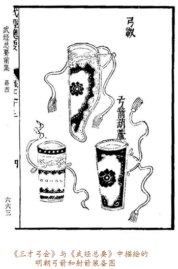 當(dāng)弓囊出現(xiàn)在眼前時,我們應(yīng)當(dāng)想到它的另一半——箭囊。實(shí)事上,古代盛裝弓箭的器物被稱為櫜鞬(gāo jiàn),櫜盛箭,鞬裝弓,多以皮革制作。比如明十三陵出土的萬歷皇帝陪葬品櫜鞬,就用皮革縫制,外敷黃色素緞,金繡龍紋,鑲嵌金飾件及各色寶石。一般來說,弓囊為上寬下窄的袋形,箭囊則為長方形。在蒙古語中,弓囊與箭囊合稱為“撒答”。因為“答”與“袋”讀音相近,所以元代的漢族作家便在作品中將之寫為“撒袋”。這樣,“撒袋”一詞便入了漢語詞匯,特指裝弓盛箭的袋子。