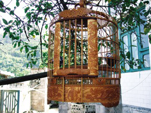 選材和傳統(tǒng)工藝是布依族鳥(niǎo)籠制作的兩大關(guān)鍵環(huán)節(jié)。最好的用材是優(yōu)質(zhì)畫(huà)眉竹、毛竹和青竹。竹材的采伐時(shí)間,有嚴(yán)格的要求,一般是在每年的秋收以后到第二年的正月間最為合適。其它時(shí)間采伐的竹材水性重,易蛀蟲(chóng)。至于竹材,則以生長(zhǎng)5到7年的竹子最為理想。這種年齡的竹料柔韌、堅(jiān)硬、鮮亮。布依族鳥(niǎo)籠全由精雕細(xì)鏤的各式竹節(jié)(條)組合而成,構(gòu)成部件做工精細(xì)。雕飾分花、素兩款,樣式有方、圓兩類。雕花鳥(niǎo)籠,從取材到最后組裝完成,需10天左右。鳥(niǎo)籠雕刻圖飾有“雙鳳朝陽(yáng)”、“二龍戲珠”和“蝴蝶結(jié)”等等。