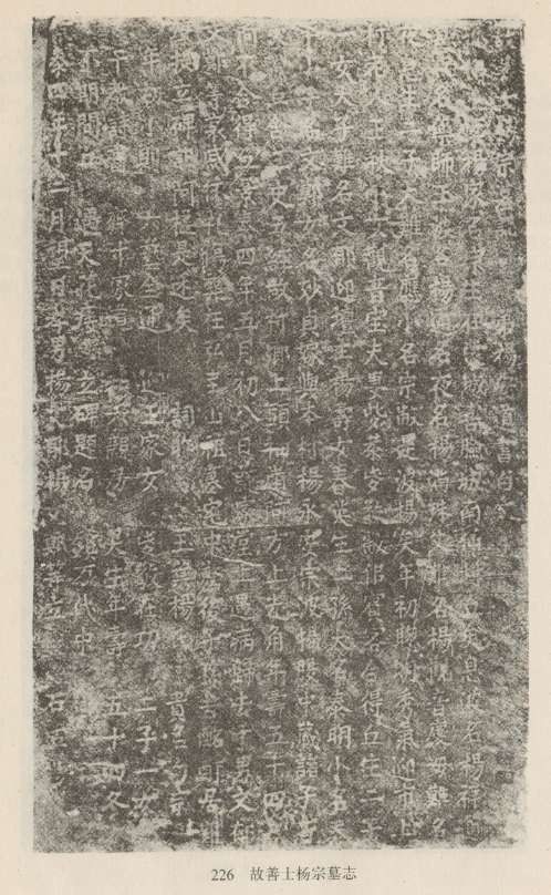 白文墓志。楊安道書(shū)。明景泰四年(1453年)立于大理喜洲西五臺(tái)峰下弘圭山上?,F(xiàn)已不存。碑文是以漢字寫白語(yǔ)。內(nèi)容敘楊宗身世及姻親關(guān)系。對(duì)研究白族歷史、民俗、語(yǔ)言皆有參考價(jià)值。