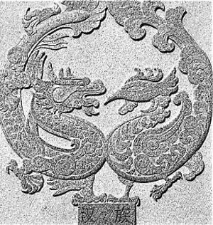 龍和鳳是漢民族最喜愛的吉祥物。龍是古代傳說的神異動物,綜合了多種動物的形象特征,其中的一種龍角似鹿、頭似牛、嘴似驢、眼似蝦、耳似象、鱗似魚、須似人、腹似蛇、足似鳳。龍是中華民族統(tǒng)一的標(biāo)志。傳說黃帝在統(tǒng)一中原之前以熊為圖騰,后來逐步兼并融合了以馬、牛、鹿、蛇、魚等為圖騰的部落,綜合這些部落的標(biāo)志特點(diǎn),形成了中華民族共同崇拜的龍的圖騰。因此中國人被稱為“龍的傳人”,龍的傳說和龍文化是中華民族最具代表性的文化象征之一。鳳是古人對多種鳥禽和某些游走動物模糊集合而產(chǎn)生的一種神物。長翅膀的鳥禽是鳳的主要集合對象,因此,鳳便登上了“羽族之長”的寶座,有“百鳥之王”之美稱。