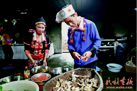 趙臘退辦起了農(nóng)家樂(lè),與妻子一起為客人準(zhǔn)備飯菜。