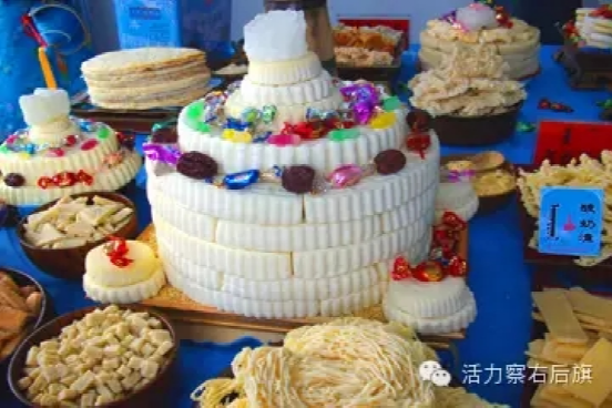 美味之一奶食:草原上的食品之首便是奶食。況且察哈爾人民在歷史上為宮廷專供“奶食”的部落,所制作的奶食品品種豐富、名目繁多,做法千姿百態(tài)。奶食在蒙語中稱"查干意德(ChagaanYidee)",俗稱白色食品。奶食大體可分為液態(tài)奶食、固態(tài)奶食兩類。液態(tài)奶食有鮮奶、淖勞日、爵亥、白油、酸油液、黃油、酸油渣、乳清、酸奶、熟酸奶、酸乳等。固態(tài)奶食有奶皮、奶豆腐、奶雜子、松葫蘆、酸奶酪。奶食品中含有大量的氨基酸、蛋白質(zhì)、油脂、微量元素,對人體機(jī)能有著不可缺少的營養(yǎng)成分,增強(qiáng)免疫力,有保健作用。奶食也被視為珍品,每逢拜年、祝壽、招待賓客、喜慶宴會等首先以品嘗奶食、敬獻(xiàn)奶酒為最美好的祝愿,這是一種神圣的禮節(jié)。