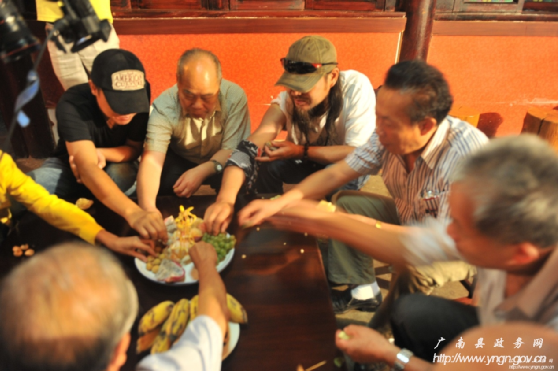 西行音樂公路之旅在享用土司盛宴——“三滴水”后,劇組被壯民族創(chuàng)造的具有深厚民族文化貫穿其中的民族飲食文化所折服,被壯民族熱情好客的情緒所感染。西行音樂公路之旅執(zhí)行導(dǎo)演劉暢說,北京有滿漢全席,想不到在廣南這個(gè)地方也有壯族自己的“滿漢全席”,他說,我和我的小朋友們都驚呆了!