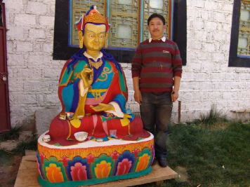 據(jù)普布次仁介紹,這些制作精美的手工藝品都出自邊巴之手,今年43歲的邊巴已經(jīng)有20多年的制作經(jīng)驗,應(yīng)該可以算是泥塑手工技藝里的佼佼者。當(dāng)向邊巴說明來意后,這個藏族漢子反而顯得有些靦腆,邊巴說:“我從小就對傳統(tǒng)手工藝很感興趣,家人就專門找了師父讓我去學(xué)習(xí),剛開始就學(xué)一些彩繪技巧,包括如何上色、構(gòu)圖等,后來接觸到了泥塑技藝,我就逐漸迷上了它,這一晃20多年過去了?!?/p>