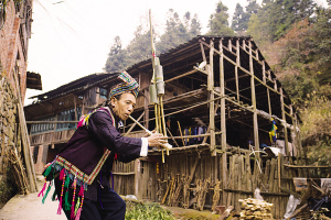 楊枝光描述的跳蘆笙場(chǎng)景讓我想想都醉了,強(qiáng)烈要求楊枝光穿上侗家盛裝表演跳蘆笙。沒(méi)想到楊枝光卻扭捏起來(lái),好不容易哄他穿上侗衣,想讓他到村口的風(fēng)雨橋上跳蘆笙,但是他卻只擺出跳蘆笙的姿勢(shì)。問(wèn)其原因,楊枝光回答:“只有正月初三村里辦蘆笙節(jié)時(shí),我們才會(huì)穿成這樣跳蘆笙。現(xiàn)在沒(méi)有游客時(shí)我吹笙唱歌,村民們會(huì)笑話(huà)的!”