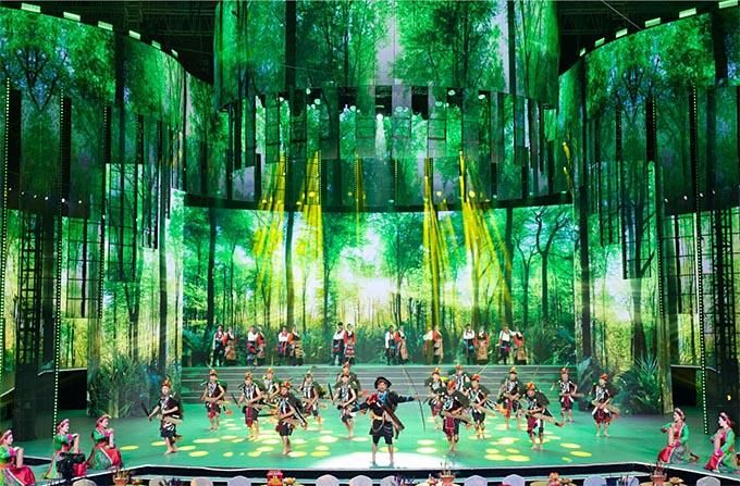 在舞美上,晚會(huì)傾力打造中華文化概念,突出鑄牢中華民族共同體意識(shí),建構(gòu)熱烈祥和的觀演環(huán)境、身臨其境的現(xiàn)場(chǎng)體驗(yàn)、自然流暢的互動(dòng)場(chǎng)景,以更炫麗、更時(shí)尚、更具生命力的節(jié)目?jī)?nèi)容和形式,為觀眾提供技術(shù)與藝術(shù)完美結(jié)合的視聽盛宴。主創(chuàng)人員別具匠心地把舞臺(tái)設(shè)計(jì)成一個(gè)具有民族特色的大客廳,寓意各族兄弟姐妹溫暖團(tuán)聚,營(yíng)造既有民族特色又有時(shí)代氣息的視覺(jué)空間。