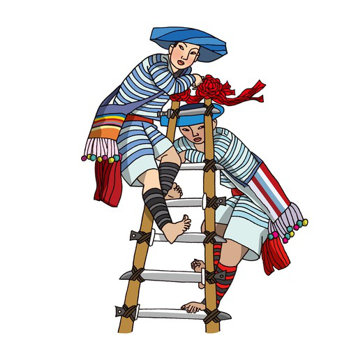 傈僳族(上刀桿):傈僳族有574856人,聚居在云南省怒江傈僳族自治州,迪慶、德宏等州亦有分布。傈僳族傳統(tǒng)體育項目是射弩,蕩秋千、過溜、摔跤、快速砍竹子、上刀桿、泥彈弓、溜索、游泳等。