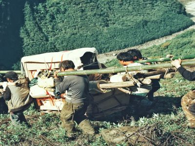 村民們把仔細(xì)打包的鋼琴抬回村...